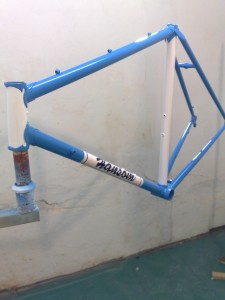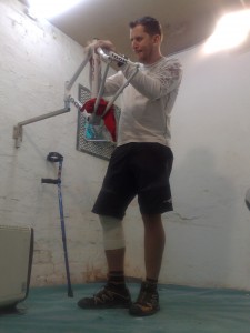 Painting on crutches Leave a Reply Broken knee and all, Jared continues with the spray painting. And what a lovely job he is doing…